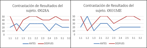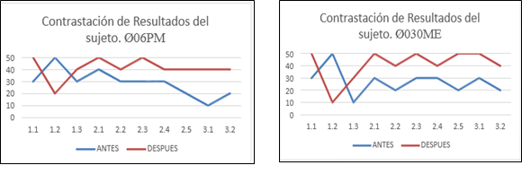 Fig. 1 y 2. Contrastación de resultados de sujetos pertenecientes al grupo 2