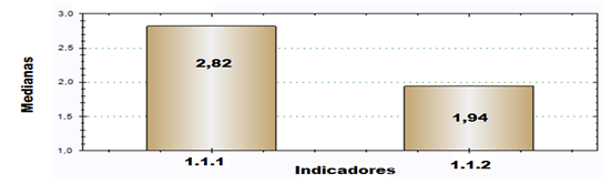 Fig. 1. Valores de mediana para los indicadores de la subdimensión 1.1