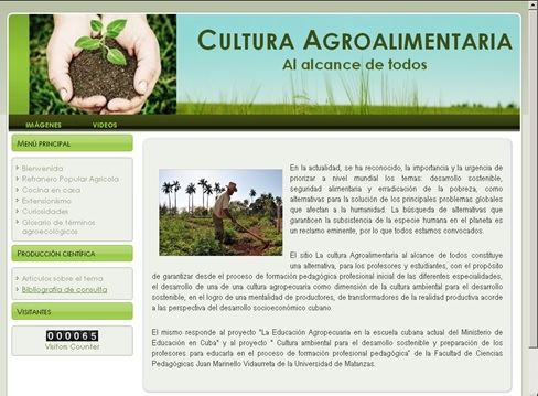 El sitio creado para el desarrollo de la cultura agropecuaria brinda un menú principal que posibilita acceder a informaciones generales como: