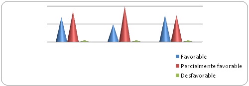 Aunque la familia tuvo mayor incidencia en la afectación de los indicadores: participación en la evaluación y en la elaboración de las alternativas para transformar la situación de riesgo, solo el primero se comporta entre parcialmente favorable y desfavorable, lo que muestra avances en el conocimiento de la situación de riesgo, en la participación, en la elaboración e implementación de conjunto con el maestro de las alternativas de solución de los diferentes conflictos. Los comportamientos declarados como parcialmente favorables, generalmente fueron asociados a los niveles de ayuda para las diferentes acciones a realizar por los participantes.