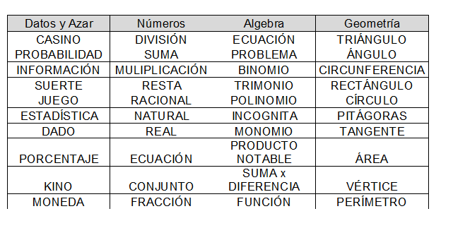 Objetivo de la investigación: La investigación tiene como objetivo cuantificar y describir el léxico disponible en matemáticas que posee una muestra de estudiantes de enseñanza media (escuelas secundarias) de Concepción, Chile. Considerando tres estratos sociales distintos y cuatro centros de interés (números, álgebra, geometría, datos y azar).